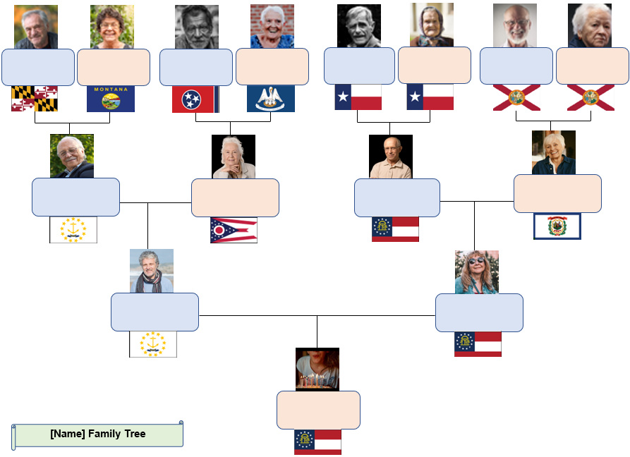 4-Generation Vertical Family Tree Excel Templates