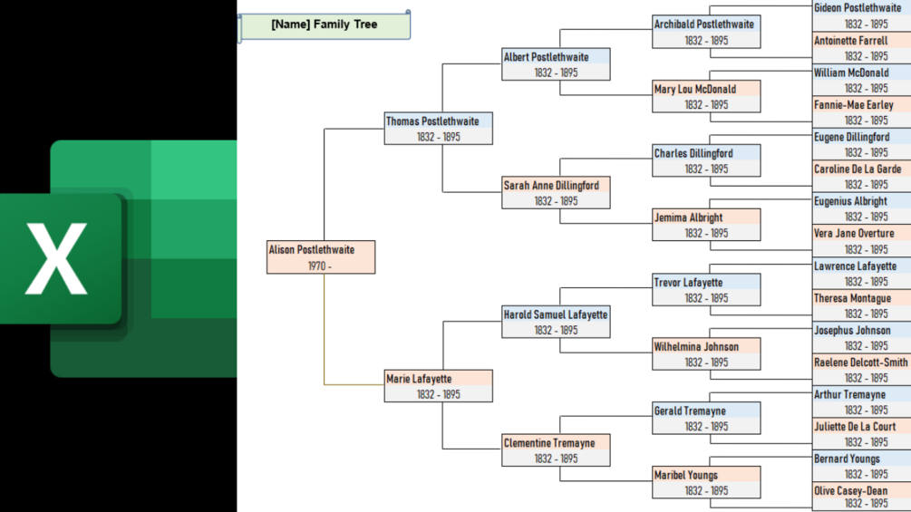 Four templates for creating and printing a five-generation pedigree family tree in Excel: